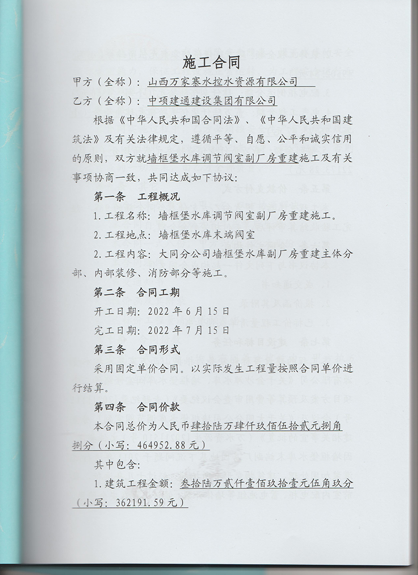 大同 墙框堡水库调节阀室副厂房重建项目